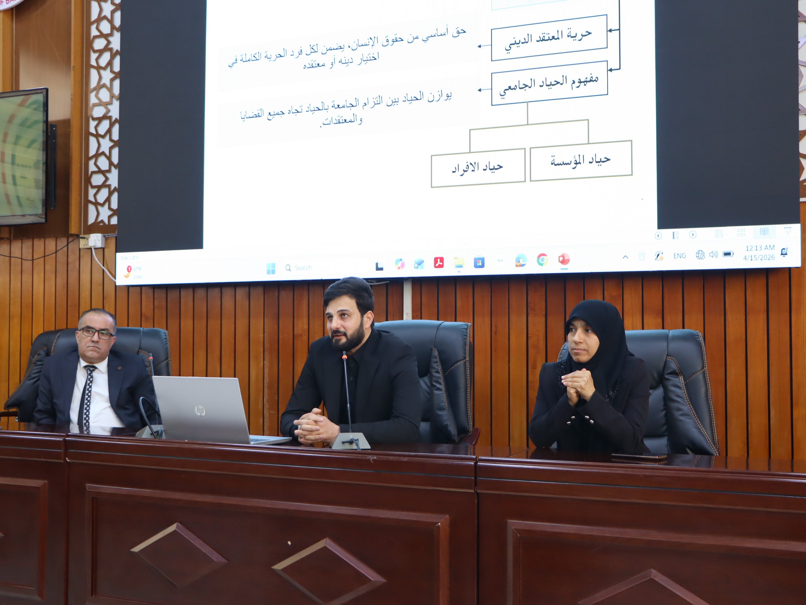 وجاءت المحاضرة بعنوان “التوازن بين حرية المعتقد ومتطلبات الحياد الجامعي”، حيث ألقاها المدرس حسين جاسم شتاتي، متناولًا فيها الأطر القانونية والإنسانية لحرية المعتقد، وآليات تحقيق التوازن بينها وبين ضرورة الحفاظ على بيئة جامعية محايدة تحترم التنوع وتضمن الانسجام الأكاديمي.